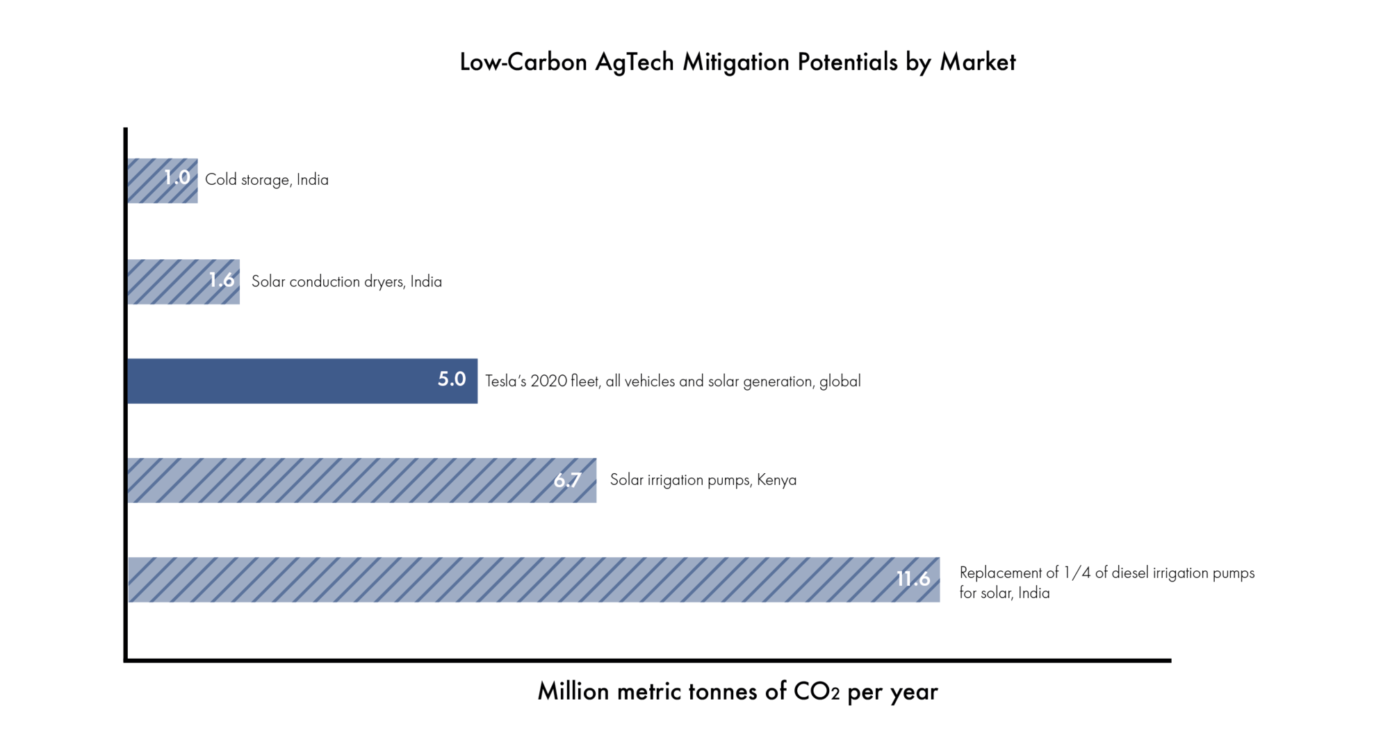 - Replacing just one-quarter of the 8.8 million diesel irrigation pumps in India with solar pumps, which would require an investment of approximately $3.3 billion, would reduce CO2 emissions by 11.5 million tons per year.